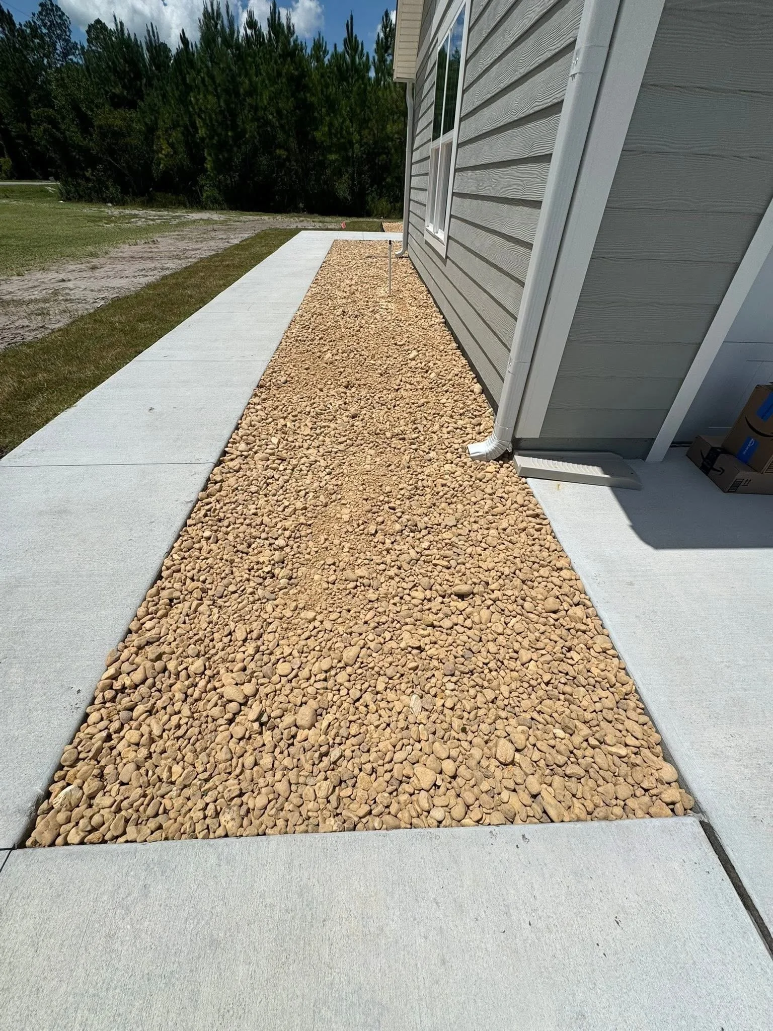 Check out this before and after where we installed an improved rainwater drainage system to prevent flooding in the beds and laying rocks for a crisp and refreshed addition to our client’s curb appeal. Trust Crown Top to bring your visions to life!